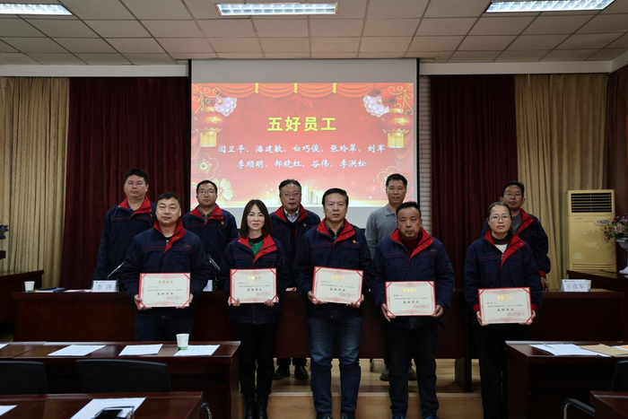 会上通报了2024年度获得上级荣誉表彰的单位和个人,表彰了2024年度涿州公司先进集体、劳动模范、五好员工。