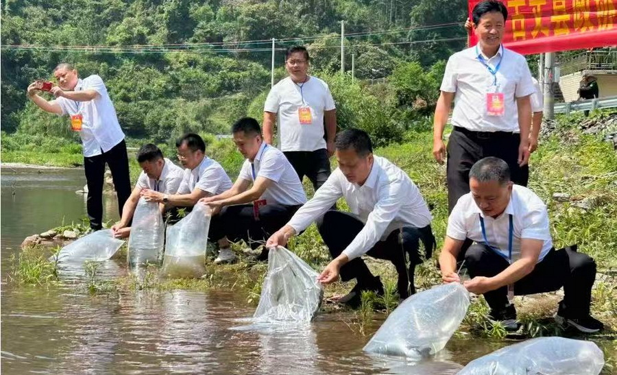 书香润初心,助力生态美。5月29日,古丈县政协“书香伴履职·学习聚共识”读书分享会暨“改善生态环境民主监督”活动在岩头寨镇举行。海利驻村工作队全程参加了本次活动。在鲇溪村,县政协主席宋祖林及委员代表一行实地走访了河流沿岸、垃圾处理场等重点区域,现场调研生态环境保护现状,听取干群意见,并就发现问题提出整改建议。活动组还向鲇溪河投放鱼苗20万尾,以促进水域生态修复。