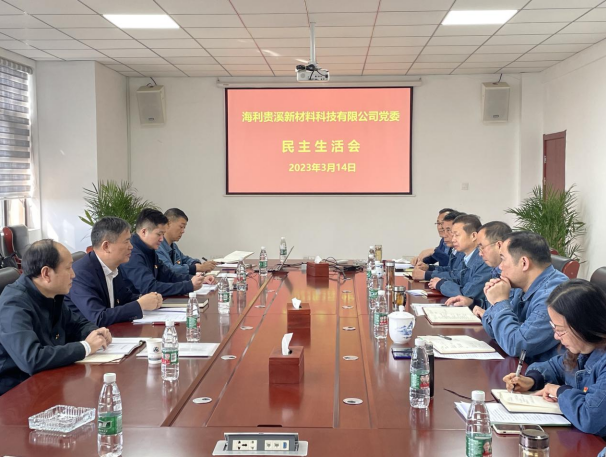按照集团公司党委部署安排,海利贵溪新材料科技有限公司党委于3月14日上午组织召开2022年度民主生活会。集团公司党委副书记李一辉,党群工作部部长王怀之,副部长赵国安到会指导工作。会议由公司党委书记刘凌波主持,公司党委班子全体成员参加会议。